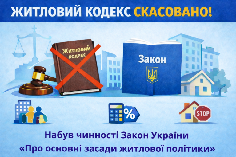 У лютому 2026 року в Україні набув чинності Закон України «Про основні засади житлової політики», яким скасовано застарілий Житловий кодекс 1983 року.